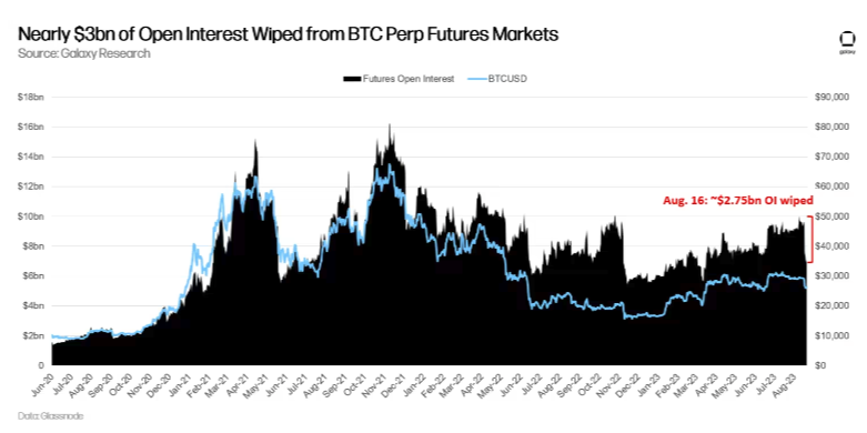 이번 하락으로 역사적으로 낮은 변동성을 기록하던 국면은 막이 내렸고, 비트코인 선물 시장에서는 미결제약정 27억 5000만 달러 이상이 사라졌다. 이는 지난해 11월 FTX 붕괴 이후 가장 큰 하락 폭이었다.