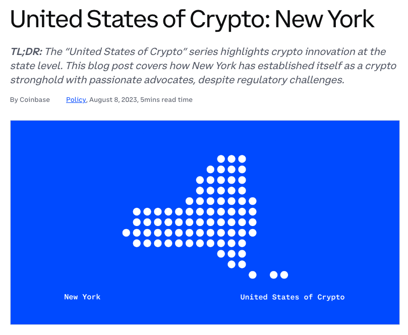 8일(현지시각) 코인베이스는 ‘암호화폐의 미국 시리즈’ 네 번째로 기술 혁신과 예술, 패션의 중심지 뉴욕의 소식을 전했다.