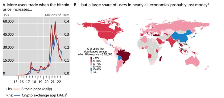 “2015년 8월부터 2022년 12월까지 주요 암호화폐 거래 플랫폼 자료에 따르면, 거의 모든 국가에서 암호화폐 앱 사용자 대다수가 비트코인 거래에서 손실을 본 것으로 나타났다.”