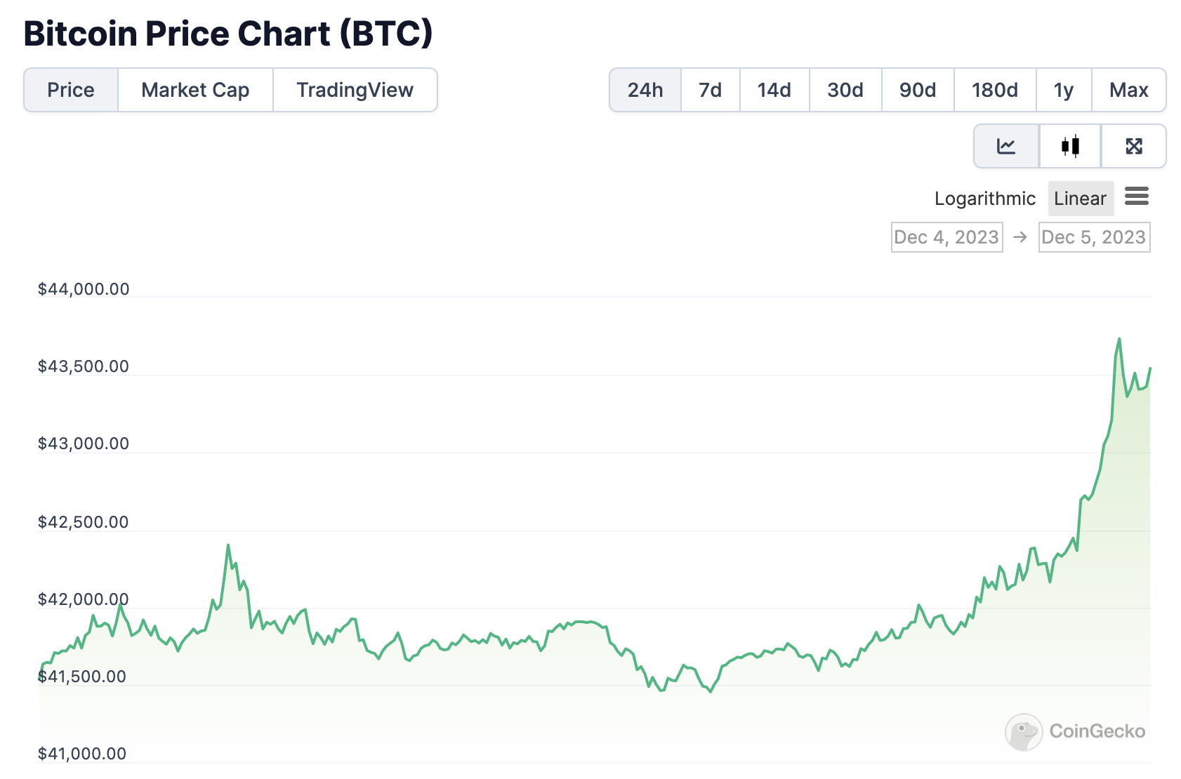 6일 오전 2시, 비트코인 가격이 4만 3735달러까지 상승하며 4만 4000달러에 도전했습니다.