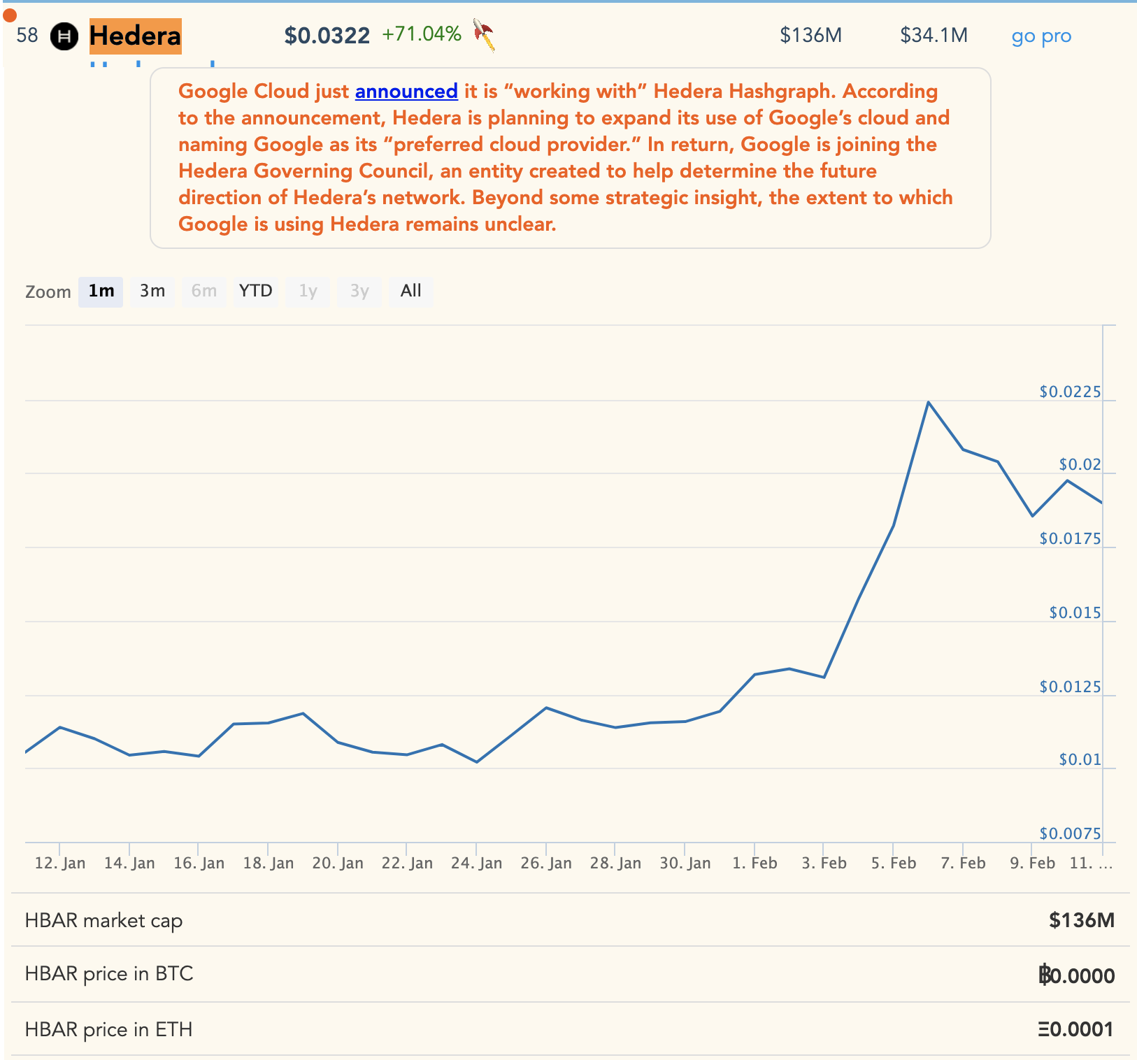 Sponsored소식의 등장과 함께, 헤데라 해시 그래프는 66% 급등하며, 현재 작성하고 있는 시간을 기준으로 이전 24시간 대비 71% 이상 상승한 것으로 확인이 된다.