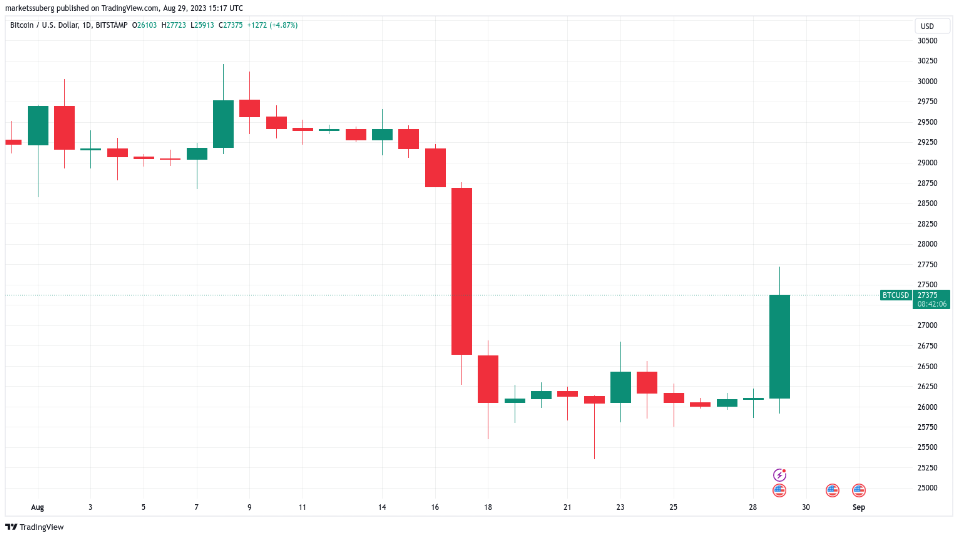 그레이스케일의 승소는 8월 중순 이후 하락세를 이어가던 비트코인 시장의 흐름을 바꿔 놓고 있다.