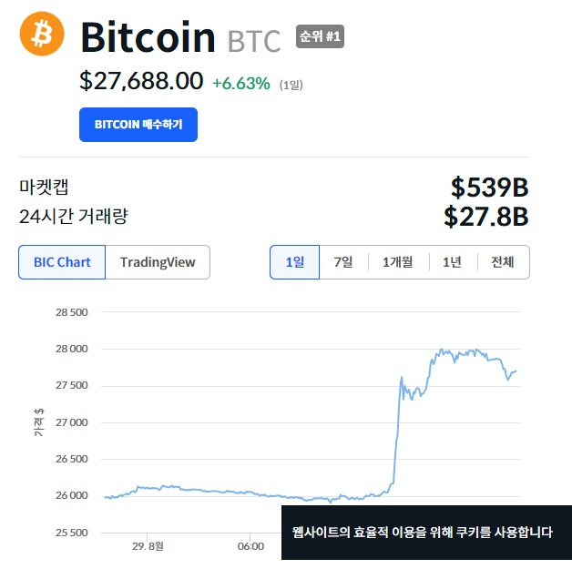 Sponsored이 소식이 전해지자, 비트코인 가격은 한 시간 만에 6% 넘게 상승해, 2만 7600달러를 돌파했다.