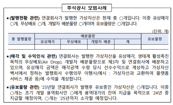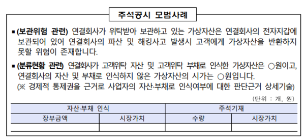 금융감독원이 가상자산 주석공시 모범사례를 공개했다.