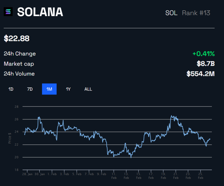 이러한 문제에도 불구하고 SOL은 지난 24시간 동안 0.48% 상승했으며 현재 22.88달러에 거래되고 있다. SOL은 지난 60일 동안 107% 상승해 2023년 가장 실적이 좋은 자산 중 하나로 꼽힌다.