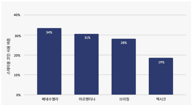 실제로 라틴아메리카는 관련 인프라가 열악한 가운데서도 암호화폐 생태계 규모가 꾸준히 성장하고 있다. 크립토 분석 기업 체이널리시스(Chainalysis) 자료에 따르면 베네수엘라의 경우 2022년 기준 1000달러 미만 소액 소매 거래에서 스테이블코인 사용 비중이 34%에 달한다.