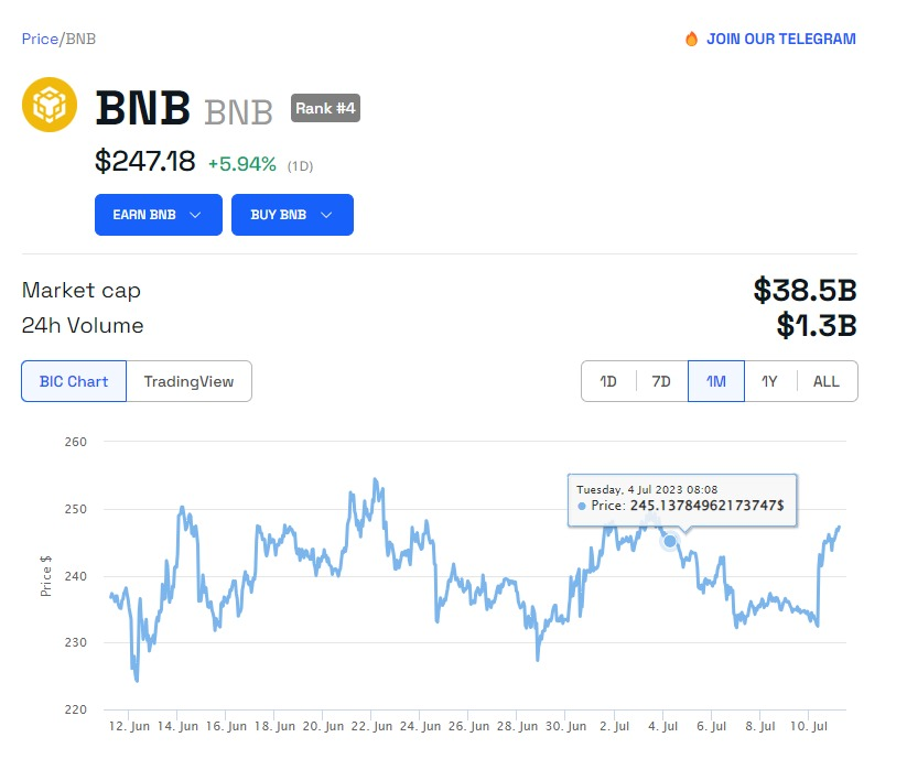 아캄 토큰 세일에 대비해 BNB를 사모으는 이들이 등장하면서 BNB 가격은 이날 하루 6% 급등했다. 아캄 토큰 세일 발표 때 232달러 수준이던 BNB는 11일 오후 3시 30분 현재 247달러를 넘어섰다.