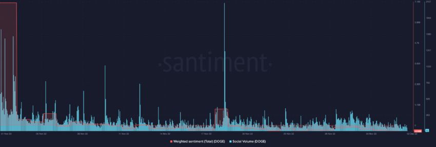 Dogecoin 소셜 지표 | 출처: 센티먼트