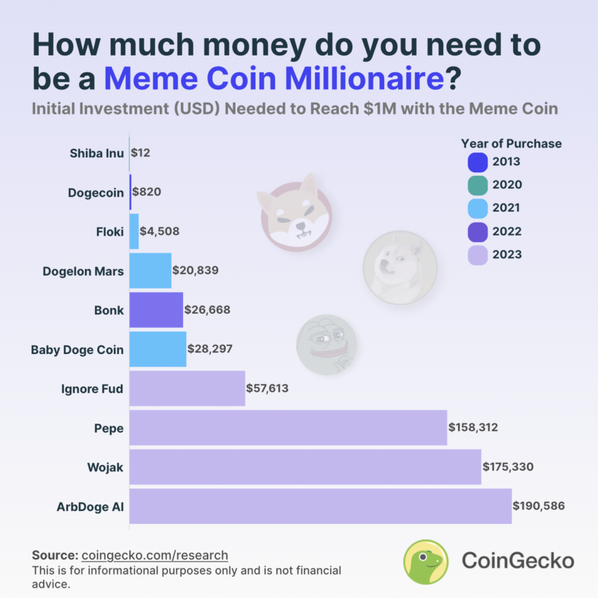 페페, 도지코인, 그리고 수많은 다른 코인들의 흥망성쇠에서 알 수 있듯이 밈 코인 거래는, 심약한 이들은 삼가는 것이 좋다.