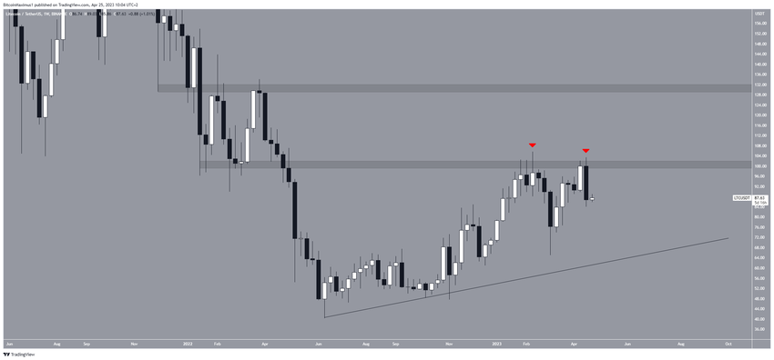 LTC 가격은 작년 6월 이후 줄곧 상승했다. 올해 2월에는 연중 최고치인 105.70달러를 기록하기도 했다. 그러나 지금은 장기 저항선인 100달러 돌파에 실패하고 고군분투 중이다.