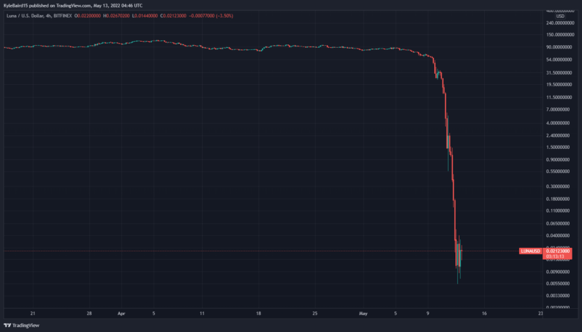 Sponsored“테라 루나는 왜 항상 “딥(dip 저가)”일 때 사지 말아야 하는지에 대한 완벽한 예를 제공한다. 어제 루나는 98% 폭락했다. 폭락으로 인해 좋은 기회가 생겼다는 생각에 딥을 샀다면 오늘 99.3%를 잃었을 것이다. 이런 일은 모든 암호화폐에서 발생할 수 있다.”