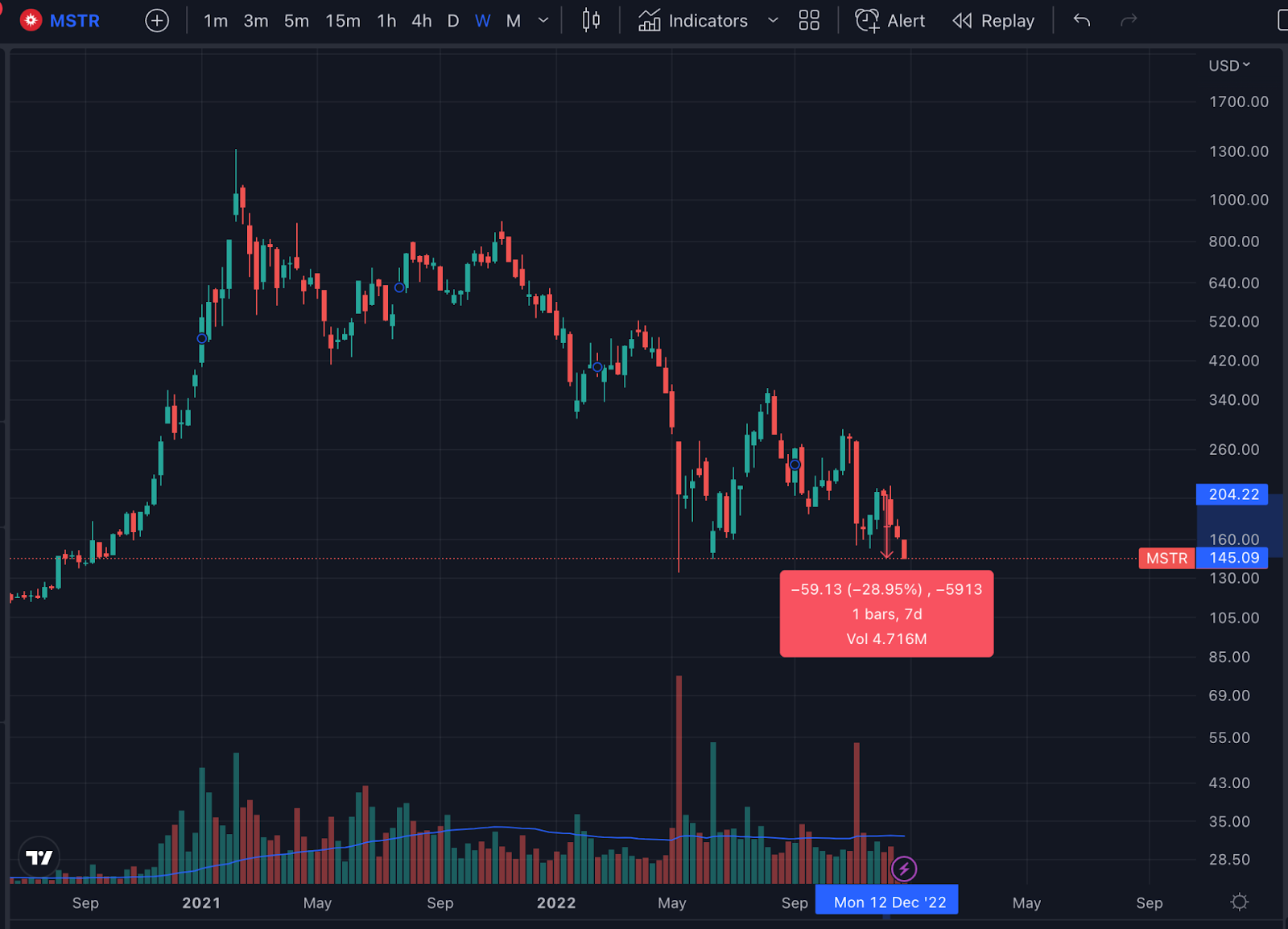 마이클 세일러가 비트코인을 사들였지만 이달 들어 마이크로스트래티지(MSTR) 주가는 고전을 면치 못하고 있다. 현재 MSTR 주가는 6개월 만에 최저치인 138.09달러에 거래되고 있으며, 12월 가격은 30% 이상 하락했다.
