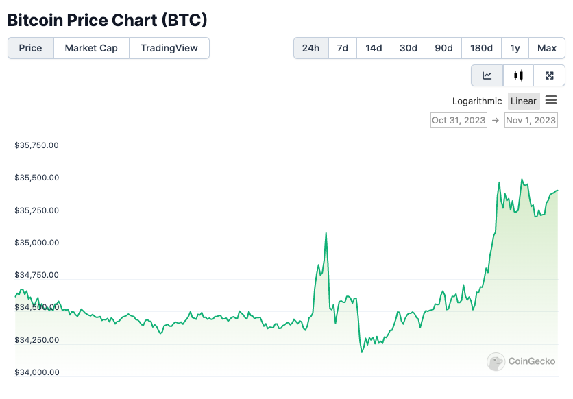 금리 동결 소식이 처음 전해지자 비트코인은 전날 대비 0.4% 소폭 상승하다 시간이 지나면서 2.2% 오른 3만 5369달러를 기록했다. 투자자들은 금리 동결 소식에 처음에는 관망하다, 월스트리트 장 마감 시간이 다가오자 다시 강세장에 대한 자신감을 드러냈다.