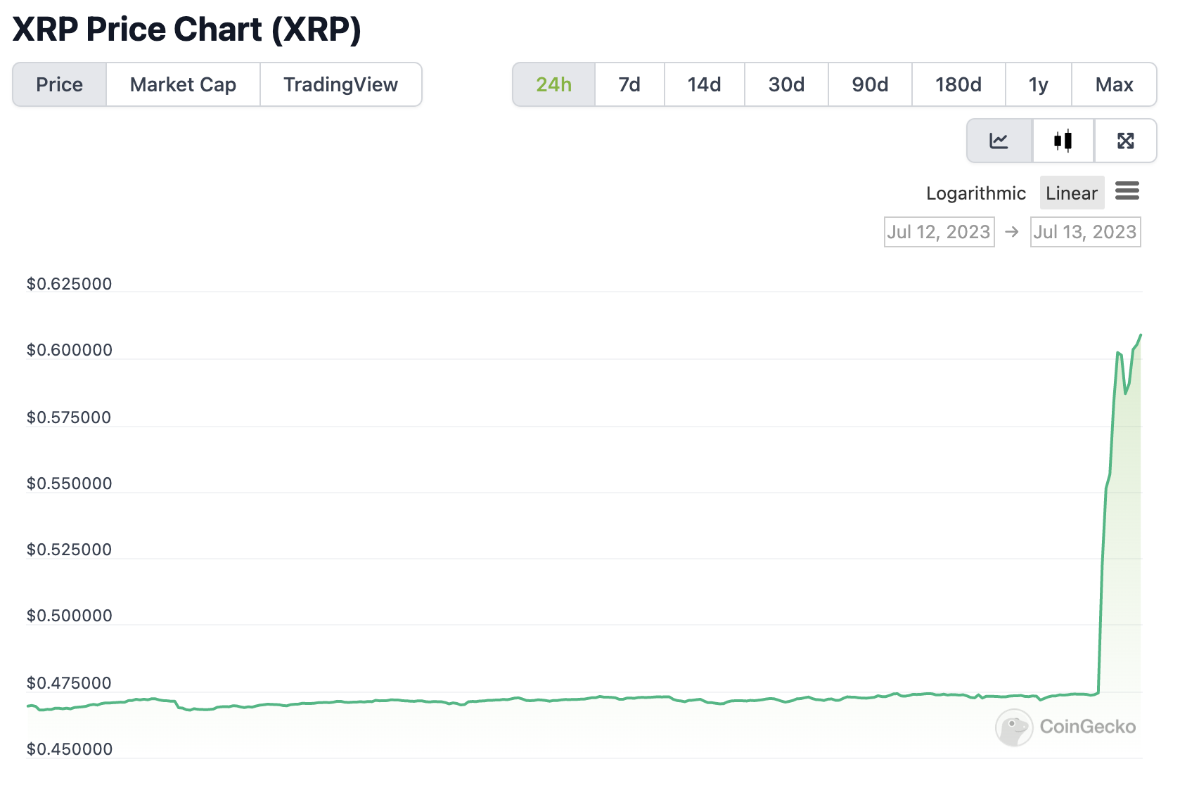 13일(현지시각) XRP 가격 추이. 출처:코인게코