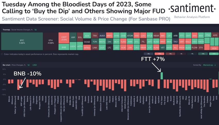 법무부의 형사 기소와 수십억 달러의 벌금은 연속으로 바이낸스 코인에 하방 압력을 가했다. 온체인 분석 회사 샌티멘트(Santiment)의 보고에 따르면 전반적으로 알트코인 시장의 시가총액이 하락하며 바이낸스 코인 가격 후퇴가 강화되었다. 흥미롭게도, 바이낸스 코인을 FTX 가상 자산 거래소의 네이티브 토큰 FTT로 교환하는 투자자도 꽤 있는 것으로 드러났다. 이러한 경향은 바이낸스에서 다른 가상 자산 거래소 토큰으로 이동하는 흐름을 의미할 수 있다.