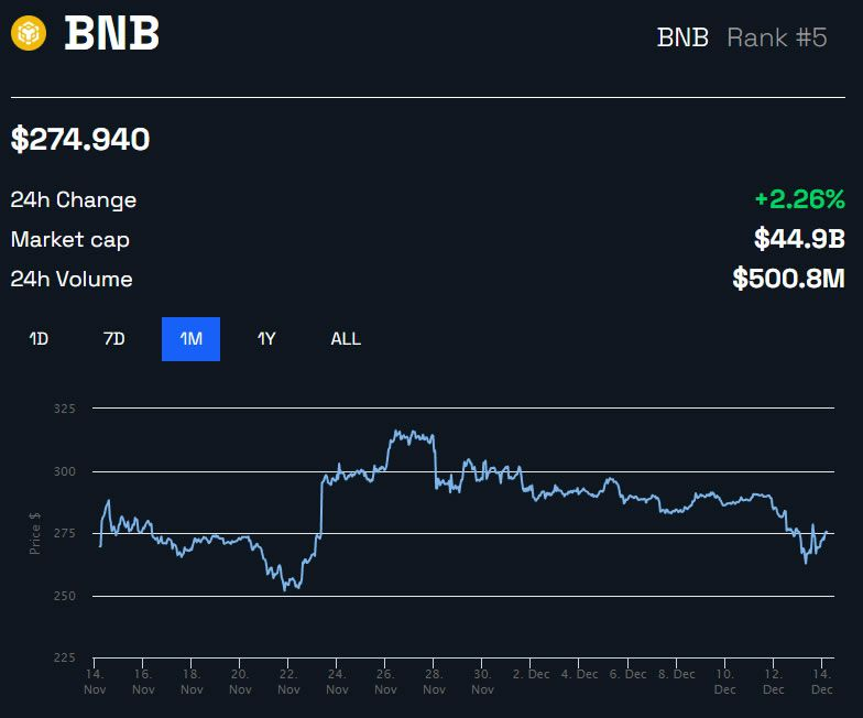 BNB는 공포가 절정에 달했을 때 262달러까지 떨어졌고, 현재 265달러선에 거래되고 있다(코인마켓캡 기준).