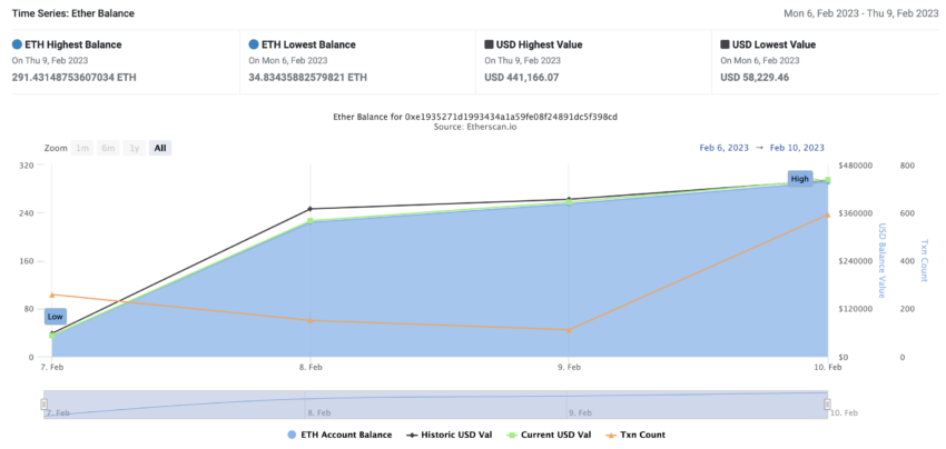 부테린의 지갑 주소 “vitalik.eth”에서 “Ahbap Yardièm / 지진 지원”이라는 라벨이 붙은 수신자 지갑(0xe1935271D1993434A1a59fE08f24891Dc5F398Cd)으로 ETH가 전송된 것이 확인됐다. 수신인의 지갑은 약 393 ETH를 보유하고 있으며, 이는 현재 시장 가격을 기준으로 약 60만달러(약 7억6230만원)에 해당된다. 지갑의 총 보유 금액은 155만달러가 넘는다.