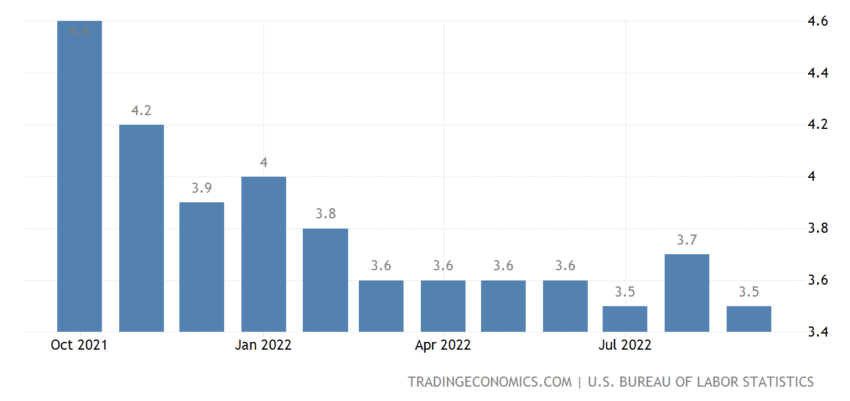 분석가들은 미국의 실업률이 2022년 9월에 3.5%에 대해 3.6%로 증가할 것으로 예상한다.