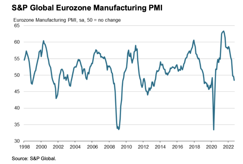 유로존의 비슷한 지표인 제조업 PMI는 2022년 11월 2일에 발표될 예정이다. 유로존 지역의 제조업 건전성을 보여준다.