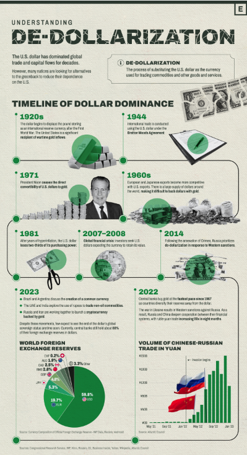 브릭스, 특히 중국의 ‘탈미국‧탈달러’ 기조가 가속화하고 있다. 최근 19개국이 브릭스 동맹 가입에 적극적으로 나서며 공동 통화를 만들자는 주장이 힘을 받고 있다. 더 많은 국가가 참여하게 되면 미국 달러의 영향력에서 벗어나고자 하는 브릭스의 노력은 더욱 강화될 것이다.