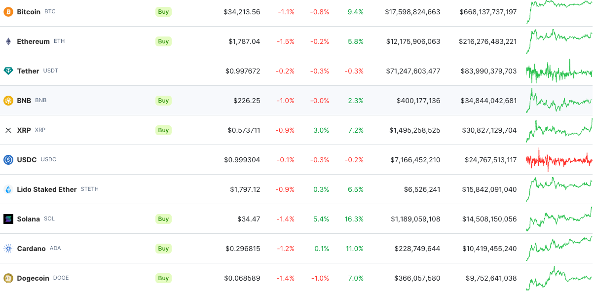 비트코인이 3만 4000달러를 오르내리고 있는 가운데, 알트코인 가격이 지난 하루 동안 급등했다.