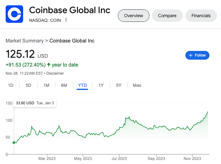 그는 그 근거로 시카고상품거래소(CME)의 비트코인 선물 미결제약정 데이터를 제시했습니다. 그는 “지난 9월 말 이후, 자산 관리자의 비트코인 선물 약정이 약 10억 달러 증가했다”고 설명했습니다. 또, 코인베이스(COIN)와 같은 암호화폐 기업의 주가와 첫 비트코인 선물 ETF(BITO)의 가격도 크게 올랐다고 덧붙였습니다. 코인베이스는 연초 대비 273% 급등한 125달러에, BITO는 같은 기간 80% 성장한 18.9달러에 거래되고 있습니다.