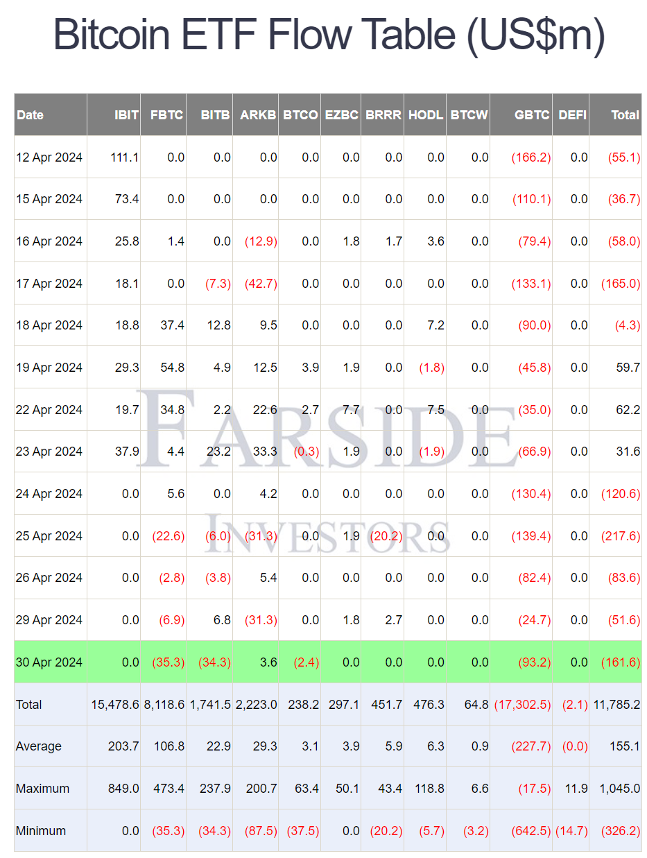 새로 알게된 것 : 미국의 자산운용사 파사이드(farside) 자료에 따르면 30일 미국 비트코인 현물 ETF 시장에서 가장 유출이 많았던 ETF는 9320만달러가 빠져나간 그레이스케일(GBTC)였습니다. 피델리티 비트코인 현물 ETF(FBTC)는 3530만달러로 유출 2위, 비트와이즈 비트코인 현물 ETF(BITB)가 3430만달러 유출로 3위를 차지했습니다.