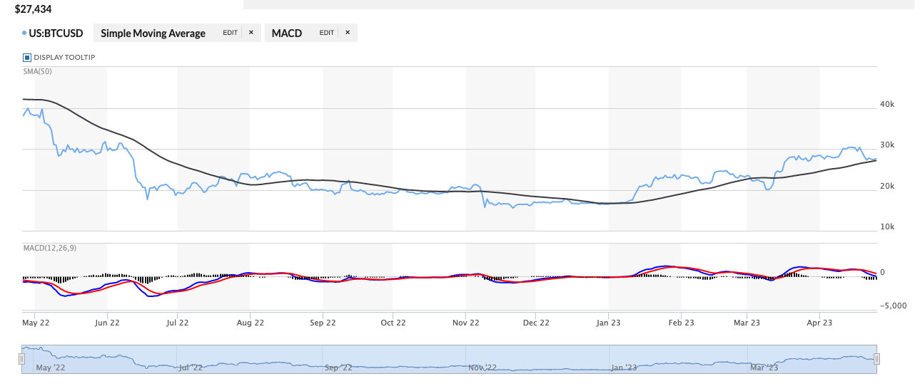 이는 ’50일 단순이동평균’인 2만 7244달러에 근접한 가격이어서 눈길을 끈다.