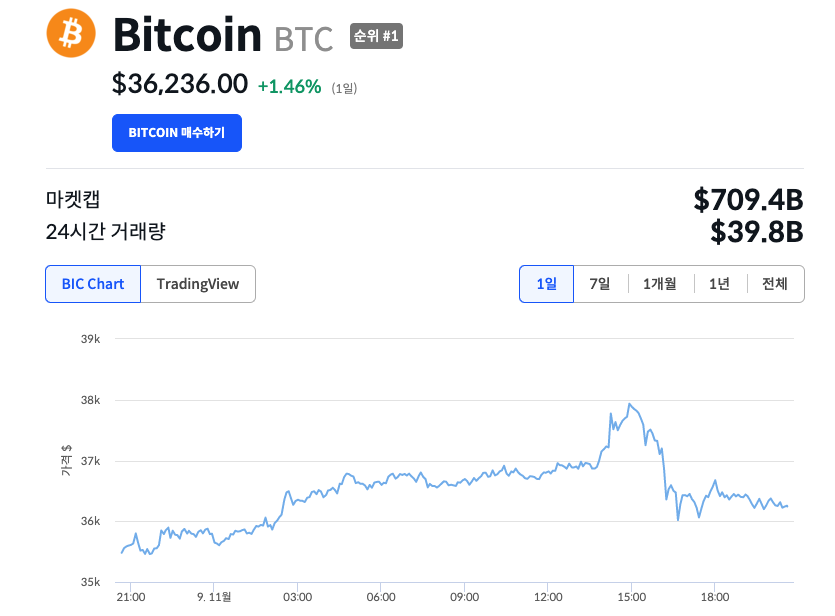 Sponsored이후, 비트코인은 단기 가격 조정을 일으키며 최고가에서 1600달러 하락한 3만 6200달러에서 거래가 되고 있습니다.