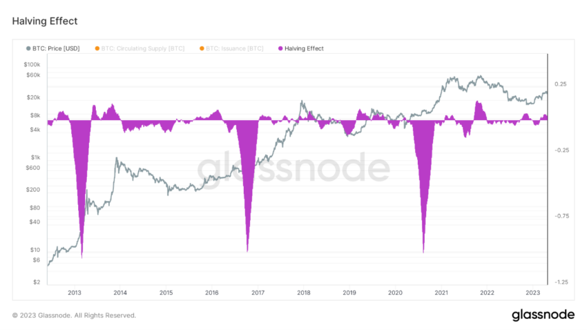 반감기가 발생하면 비트코인 수요가 일정하게 유지되더라도 공급 감소로 불균형이 발생하여 가격이 올라갈 수 있다. 이러한 가격 모멘텀은 비트코인에서 여러 해까지 이어질 수 있는 강세장을 촉발할 수 있다.