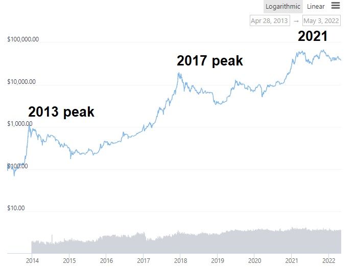2013년부터 2017년 그리고 2021년까지 패턴은 확실하게 구분할 수 있는 비트코인 사이클이다. 사이클은 2021년과 2022년에 끝나는 것처럼 보인다. 그러나 그것이 슈퍼사이클이 시작을 의미하는지 아니면 전혀 다른 것을 의미하는지 두고 보면 알 수 있다.