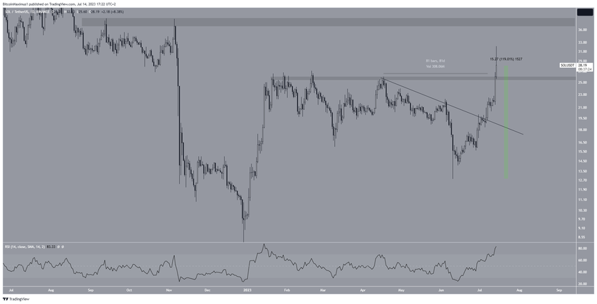 솔라나(SOL)가 32.13달러를 기록하며 연중 최고치를 기록했다. 지난달 10일 이후 120% 상승한 수치다.