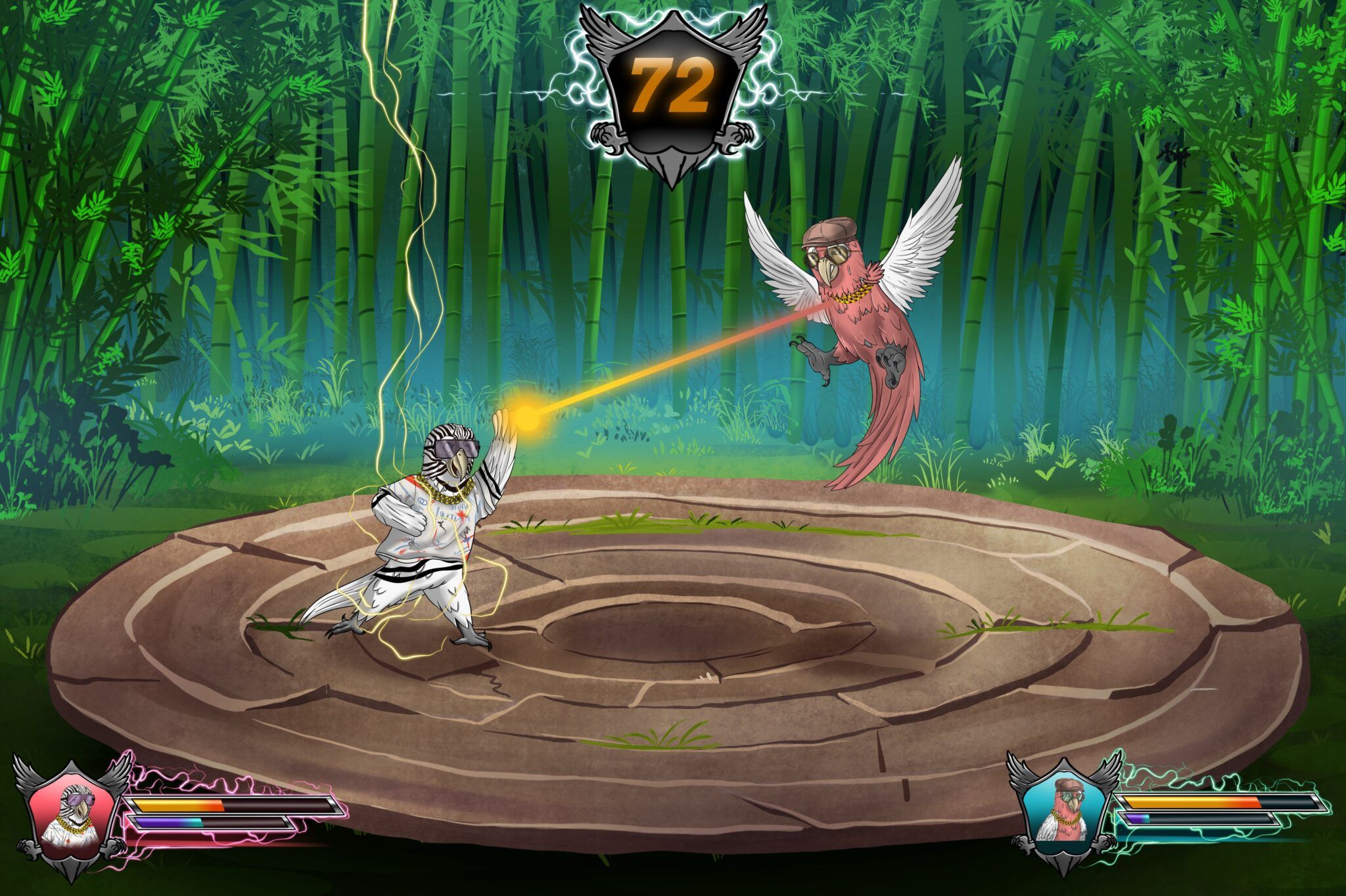 이 타이틀은 게임 플레이에 접속할 수 있는 5,555개의 독특한 NFT 컬렉션이다. 당신의 앵무새를 일대일 배틀에서 싸우게 하거나 토너먼트에 참가시킬 수 있다.