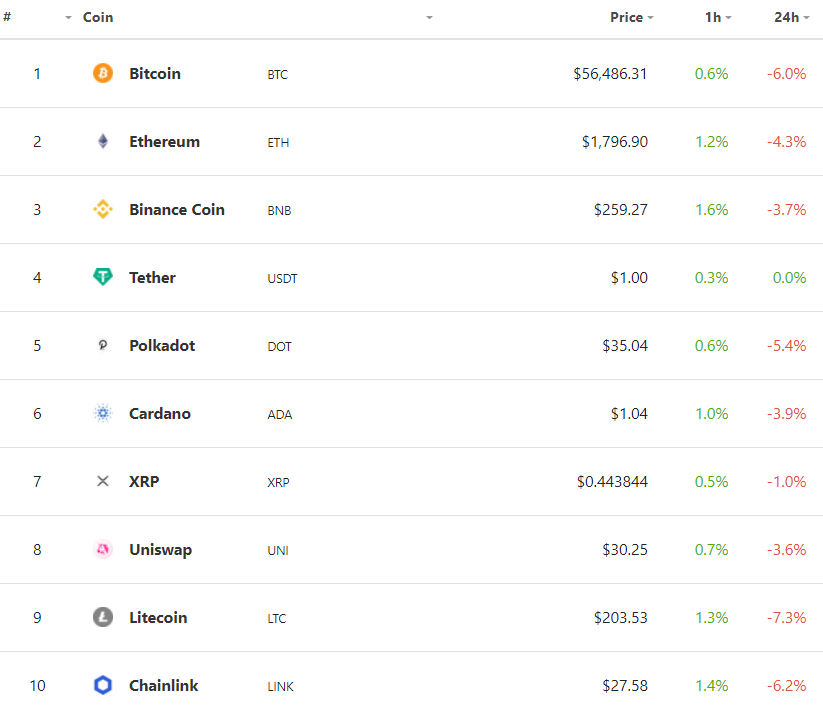 비트코인이 힘겨운 하루를 보낸 가운데, 같은 날 모든 코인이 하락세를 보이며 상위 10위권 내에 그 여파가 전달되었다. 라이트코인(Litecoin)은 7.3% 하락하며 매도세가 지속됐고 리플(XRP) 역시 1% 하락했다.