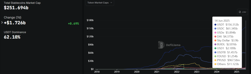스테이블코인 시가총액. 출처: DeFiLlama