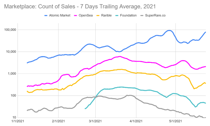 시장의 폭락에도 불구하고 사용자들은 하루 평균 8만 5,787개의 NFT를 구매, 거래, 판매하고 있으며 총 가치는 580만 달러에 달한다고 알려졌다. 이는 1월과 비교해 277% 증가한 수치로 하루 평균 21,815개의 NFT가 판매되고 있다.