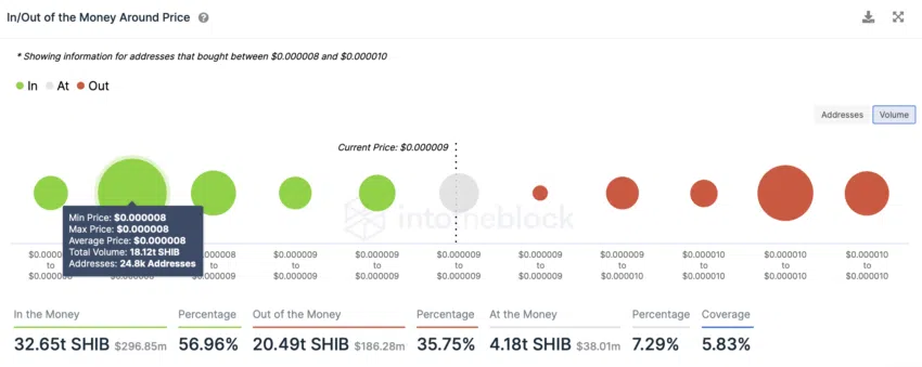 가격 조치를 주도한 주요 그룹은 소액 투자자들이다. 인투더블록의 In/Out of Money Around Price 지표를 보면 0.0000080달러 수준이 현재 견고한 가격 수준임을 알 수 있다. 해당 가격으로 2만4천800개 주소에 18조 1200억 개의 SHIB 토큰이 있다.