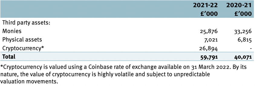 2021년 4월 1일부터 2022년 3월 31일까지 NCA의 연례 보고서는 범죄자들이 자금 세탁용으로 금융 기술과 암호화폐 자산을 악용하는 사례가 증가함으로써 영국의 경제와 제도에 피해를 입혔다고 명시하고 있다.