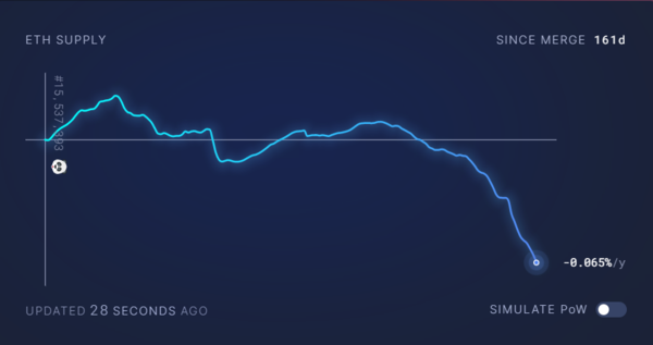 업계에선 이를 두고 “더머지 이후 기존 작업증명에서 주어지던 블록 생성 보상이 없어졌기 때문에 이더리움의 디플레이션이 깊어지고 있다”는 분석이 많다.