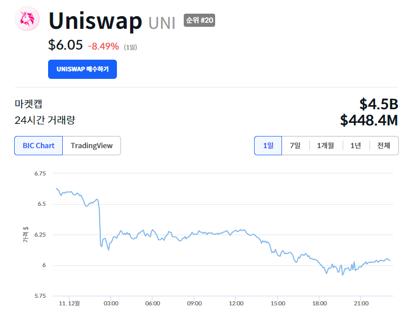 시장에 주는 영향: 12일(현지시각) 유니스왑에 긍정적인 뉴스가 나왔지만, 유니스왑 가격은 24시간 전 대비 8.5% 하락한 6.05달러를 나타냈습니다. 같은 날, 비트코인 가격이 5.6% 하락하는 등 전체 암호화폐 가격을 끌어내렸습니다.