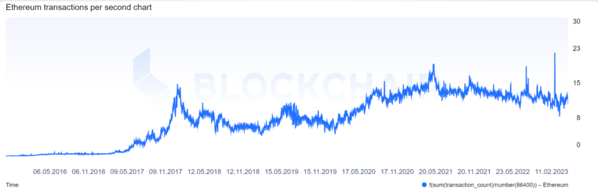 이더리움 트랜잭션 처리량. 출처: Blockchair