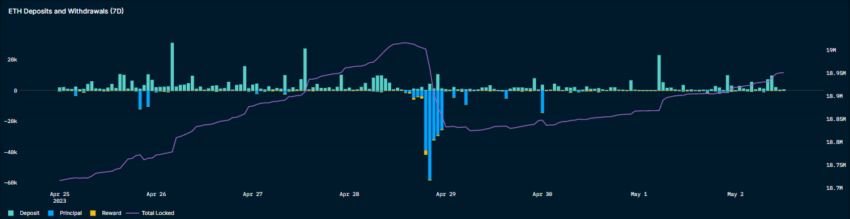 지난달 샤펠라 업그레이드로 이더리움(ETH) 출금이 가능해졌지만, 이후 자금 유입은 오히려 눈에 띄게 늘었다. 이더리움 출금량은 약 197만ETH(36억달러 규모)에 불과했다.