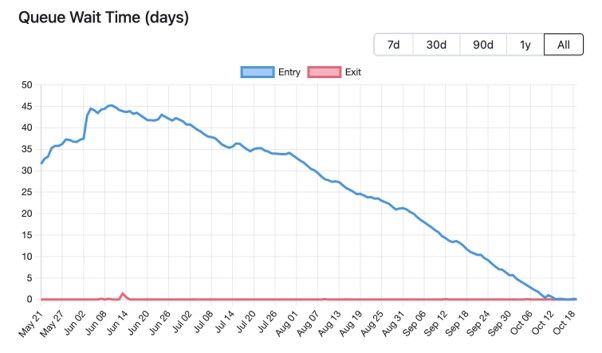 대기열 감소로 검증자가 되는 데 소요되는 시간도 이제 5시간 미만으로 단축되었다.