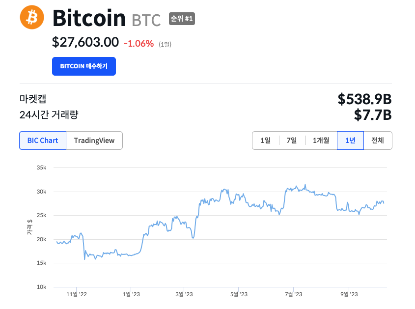 Sponsored9일(현지시각) 비트코인 가격은 전날 대비 0.8% 하락한 2만 7640달러를 기록했다.