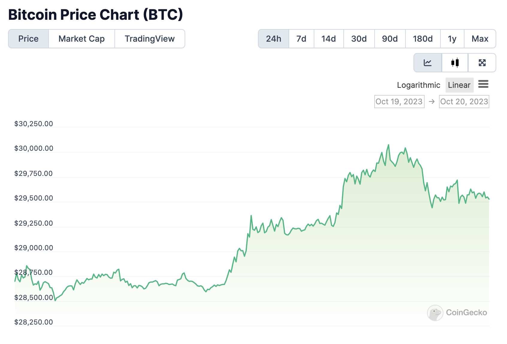 코인게코에 따르면, 이날 비트코인 가격은 3만 달러를 한때 돌파하며 전날 대비 4.5%가량 상승했다. 이후, 가격은 2만 9500달러를 오르내리고 있다.