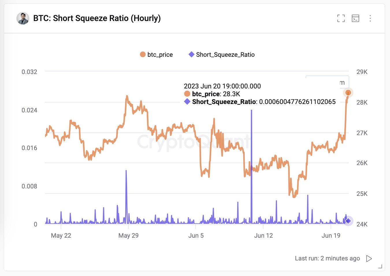 암호화폐 온체인 데이터 분석 기업인 크립토퀀트의 주기영 대표는 트위터를 통해 “(이날 상승 과정에서) 숏 스퀴즈(short squeeze)가 발생하지 않았다”고 설명했다.