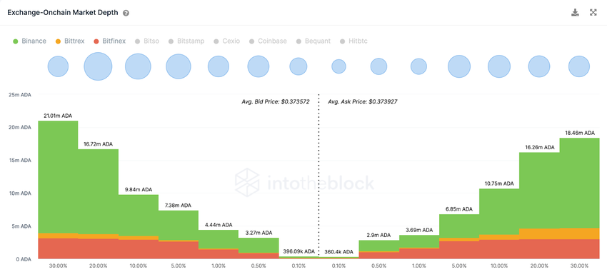 Cardano (ADA) Exchange Market Depth, March 2023