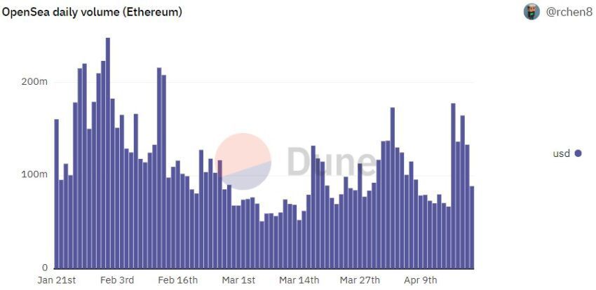 한편, 이 플랫폼은 대형 디지털 마켓플레이스 중 하나인 오픈씨(OpenSea)와 치열한 경쟁을 펼쳐야 한다. 오픈씨는 4월 20일 작성일 기준으로 이더리움에서 일일 거래량 8,800만 건을 돌파했다.