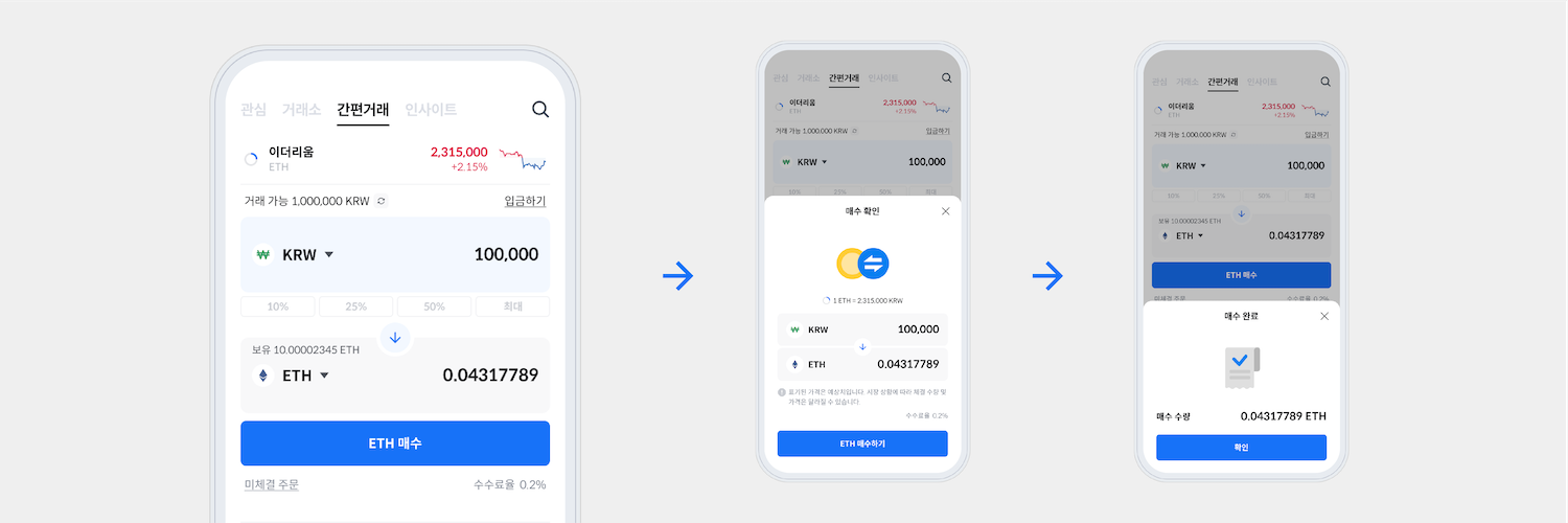 Sponsored간편거래는 코인원 웹(Web) 또는 앱(App) 메인화면 내 ‘간편거래’ 탭에서 이용할 수 있다. 현재 간편거래를 지원하는 가상자산은 비트코인(BTC), 이더리움(ETH), 리플(XRP) 3종이다. 간편거래 탭에서 해당 가상자산을 원화로 빠르게 거래할 수 있다. 거래 금액・수량 입력 시 하단 화면에 시장가로 환산된 예상 수치까지 확인할 수 있다. 코인원은 추후 해당 종목을 확장해 나갈 계획이다.