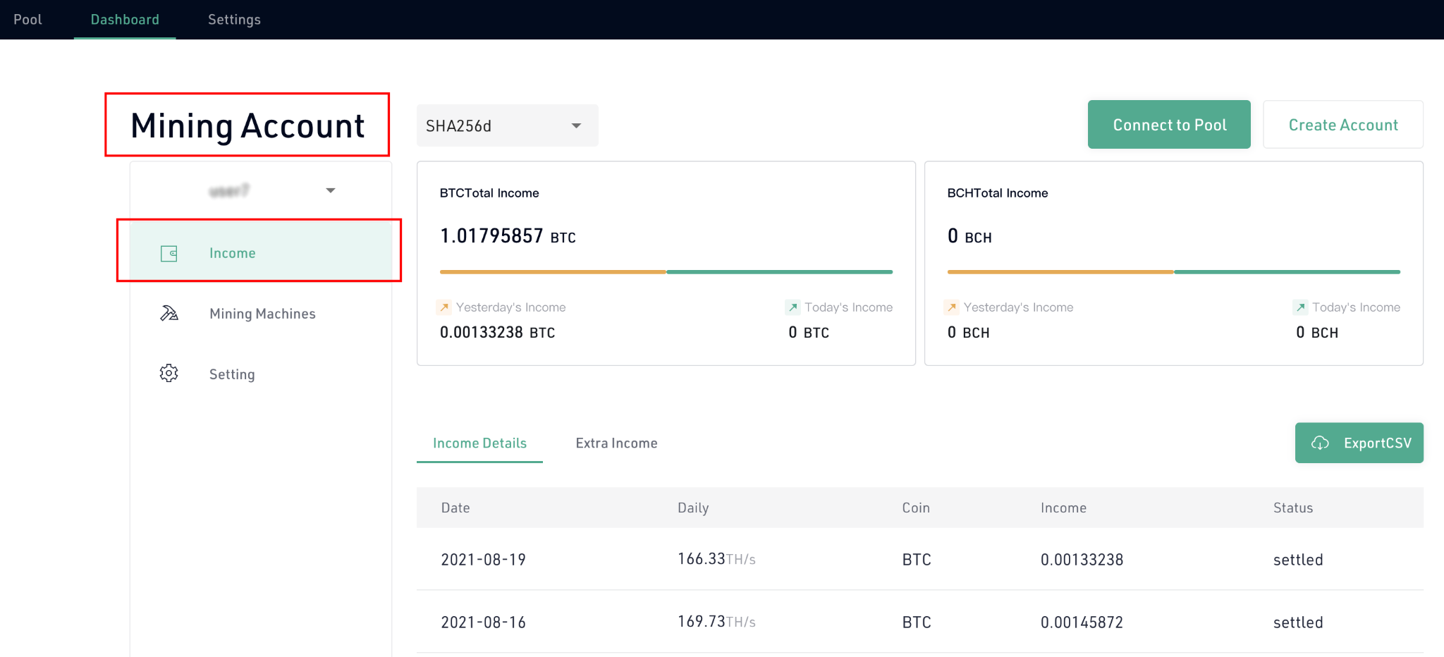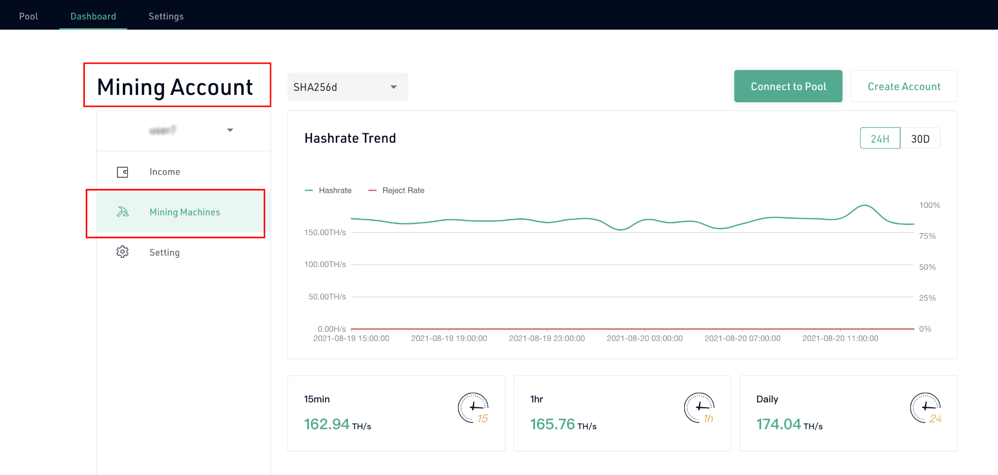 - 채굴 계정을 만들려면 “Connect to Pool”을 클릭
